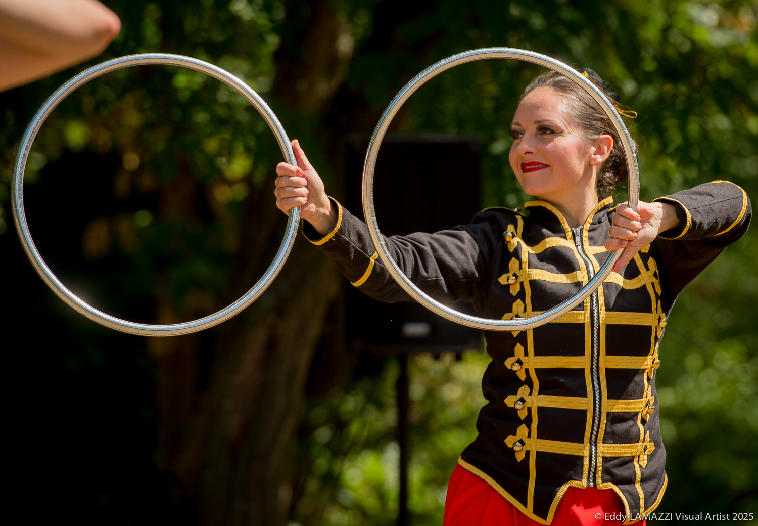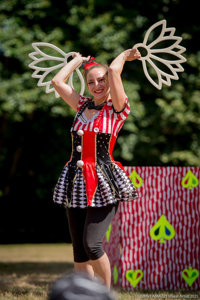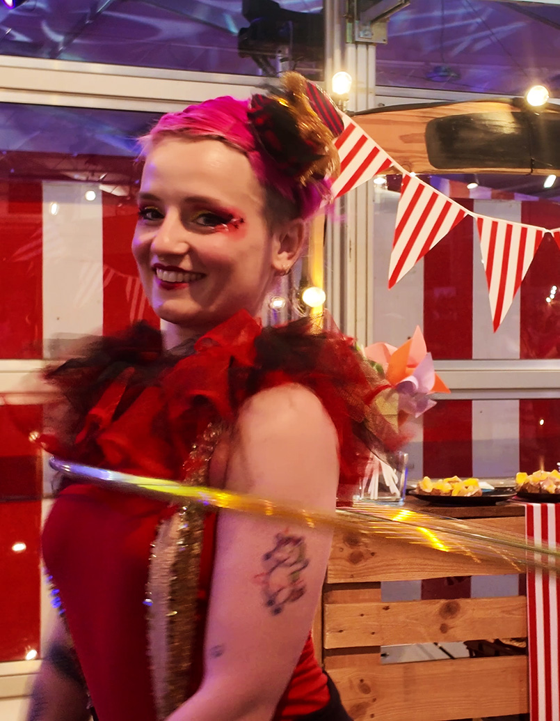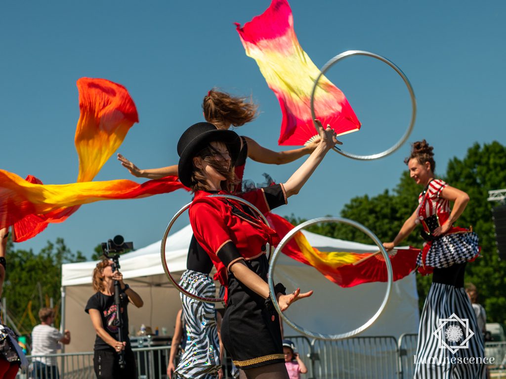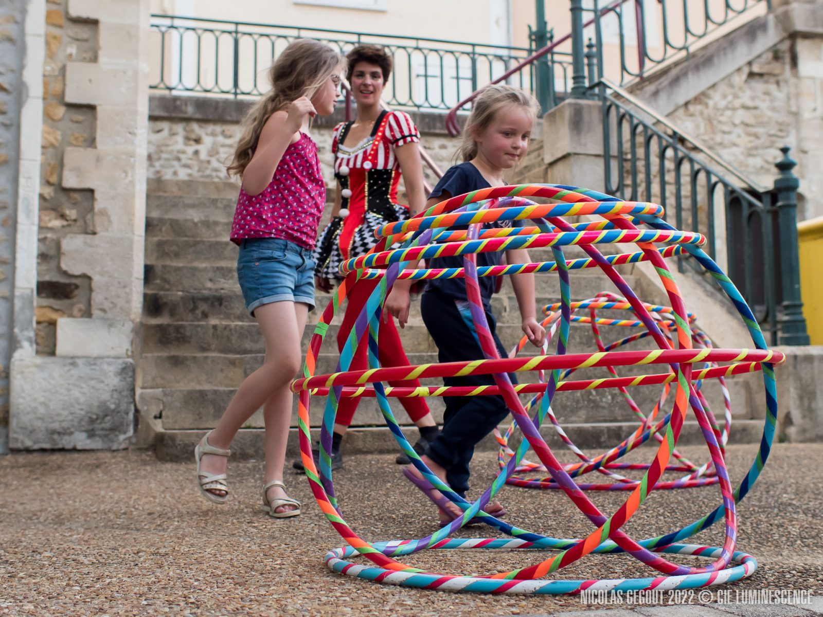Spectacles colorés de jonglerie, show visuel pour événementiel mais aussi maquillage artistique, ateliers d’initiation au hula hoop et arts du cirque.