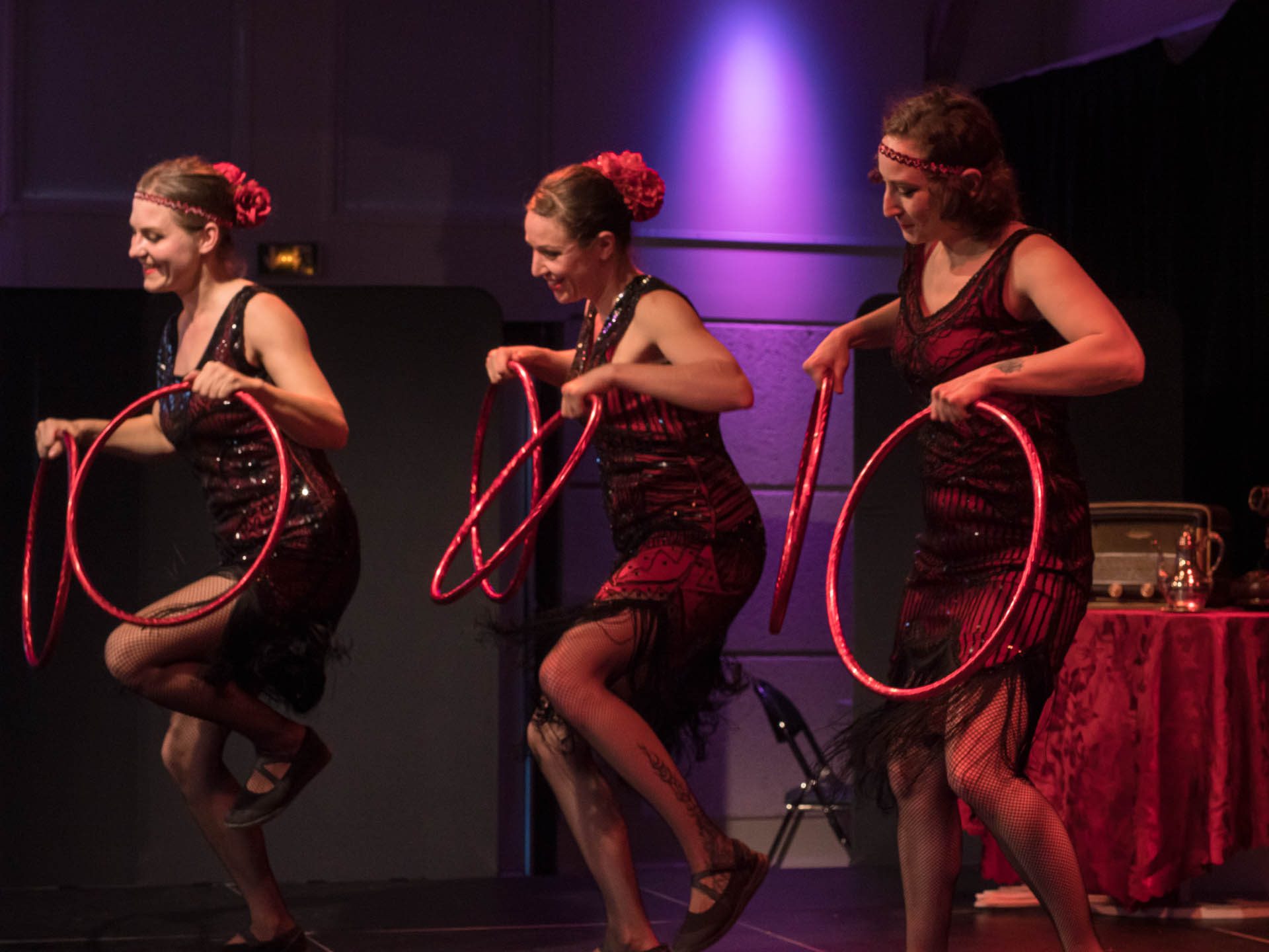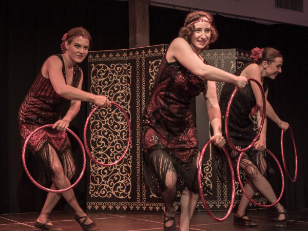 Danse swing et charleston, univers Gatsby, manipulation d’objets divers : hula hoop, éventails, mini cerceau mais aussi boas et ailes de soie. Tout est réuni dans ce spectacle pluridisciplinaire sur le thème des années folles qui ravira petits et grands !