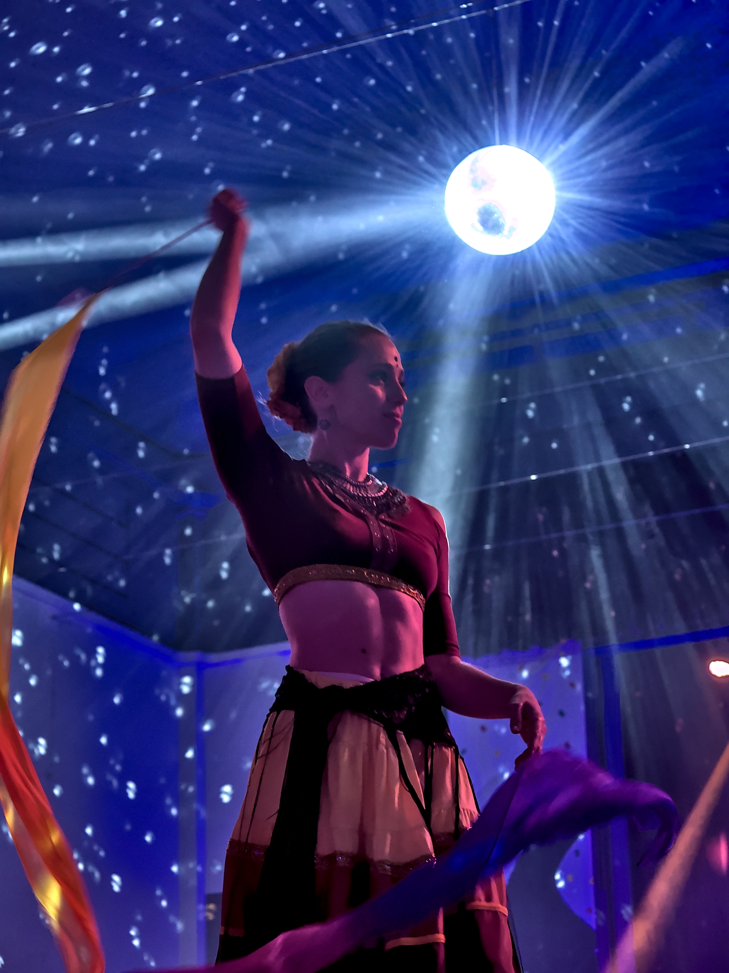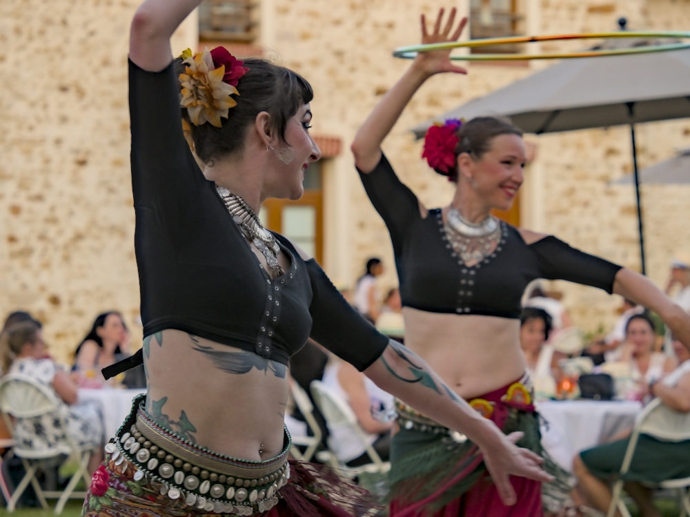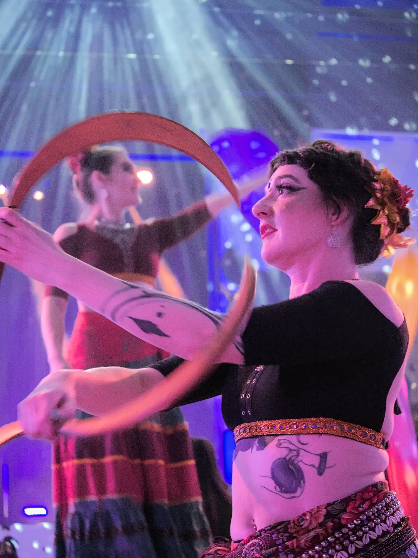 Les danseuses en costumes somptueux manipulent une ribambelle d’objets : hula hoop, éventails de soie, ailes d’Isis, bolas ou même des objets insolites et hypnotiques tels que les buugengs.