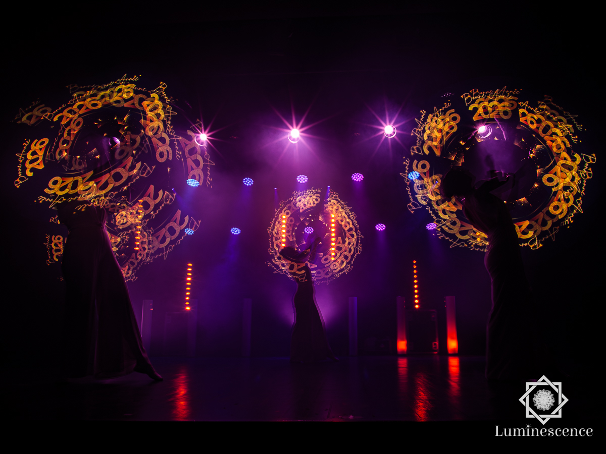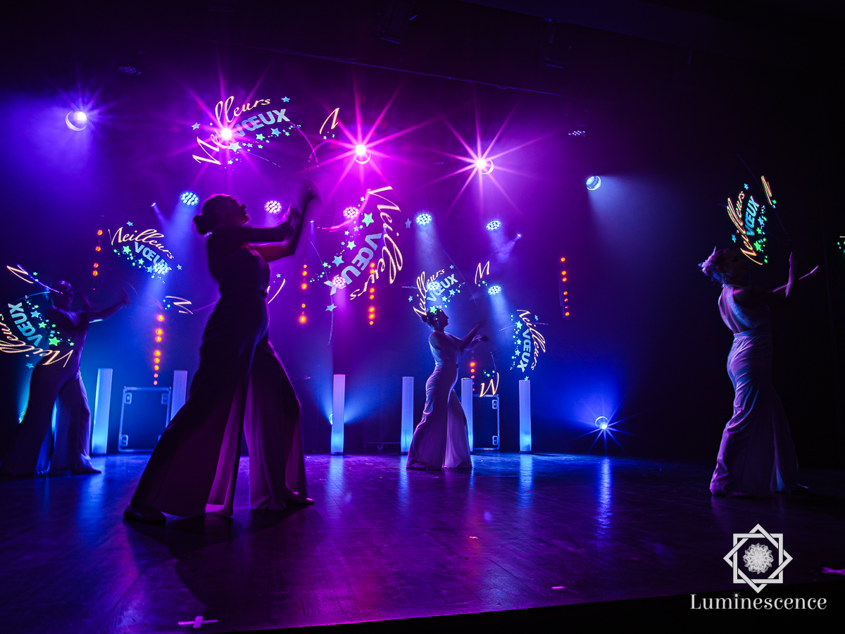 Spectacle Symphonie LED de 1 à 6 artistes, pour événementiel ou collectivité. Diffusion du logo de votre organisme